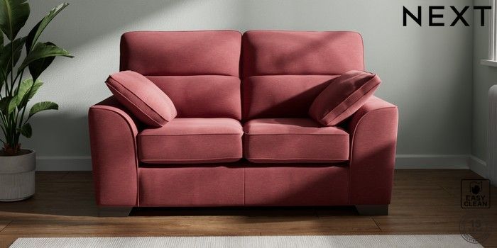 7.2.6 Buy Stamford Highback 2 Seater Small Sofa Fine Chenille Easy Clean Mid Pink Large Square Angle - Gunmetal from the Next UK online shop Click here to use our accessible website