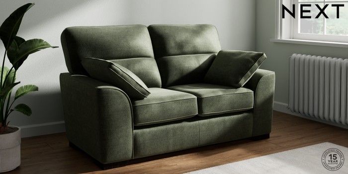 7.2.6 Buy Stamford Highback 2 Seater Small Sofa Luxe Chenille Mid Green Large Square Angle - Dark from the Next UK online shop Click here to use our accessible website