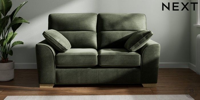 7.2.6 Buy Stamford Highback 2 Seater Small Sofa Luxe Chenille Mid Green Large Square Angle - Light from the Next UK online shop Click here to use our accessible website