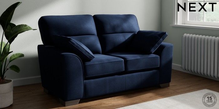 7.2.10 Buy Stamford Highback 2 Seater Small Sofa Luxe Chenille Navy Blue Large Square Angle - Gunmetal from the Next UK online shop Click here to use our accessible website