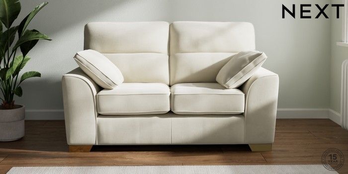 7.0.3 Buy Stamford Highback 2 Seater Small Sofa Luxe Chenille Oyster Large Square Angle - Brushed Brass from the Next UK online shop Click here to use our accessible website