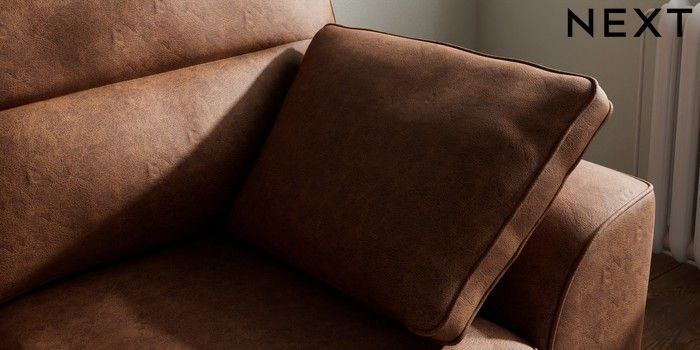 7.3.1 Buy Stamford Highback 2 Seater Small Sofa Monza Faux Leather Easy Clean Chestnut Brown Large Square Angle - Mid from the Next UK online shop Click here to use our accessible website