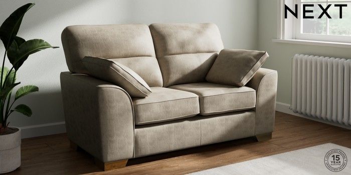 7.3.1 Buy Stamford Highback 2 Seater Small Sofa Monza Faux Leather Easy Clean Mink Brown Large Square Angle - Brushed Brass from the Next UK online shop Click here to use our accessible website