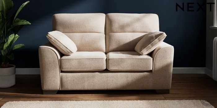 7.2.6 Buy Stamford Highback 2 Seater Small Sofa Multi Weave Mid Natural Large Square Angle - Gunmetal from the Next UK online shop Click here to use our accessible website