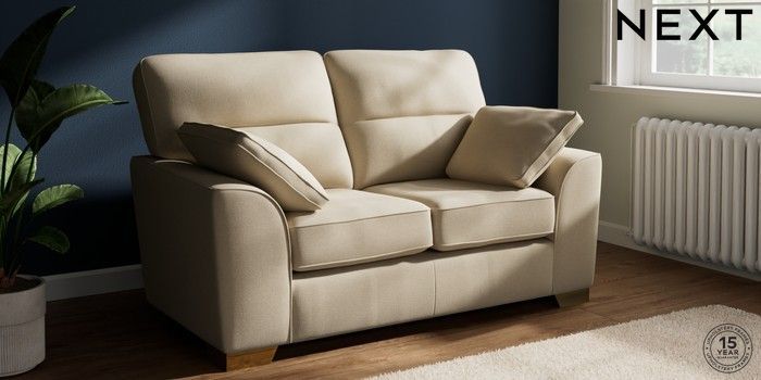7.2.10 Buy Stamford Highback 2 Seater Small Sofa Natural Mix Light Natural Large Square Angle - Brushed Brass from the Next UK online shop Click here to use our accessible website