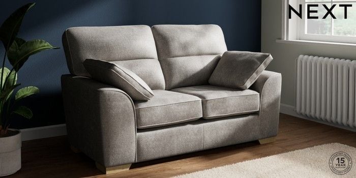 7.2.10 Buy Stamford Highback 2 Seater Small Sofa Plush Chenille Light Grey Large Square Angle - Light from the Next UK online shop Click here to use our accessible website