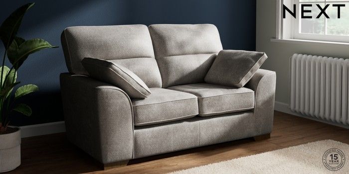 7.2.10 Buy Stamford Highback 2 Seater Small Sofa Plush Chenille Light Grey Large Square Angle - Mid from the Next UK online shop Click here to use our accessible website