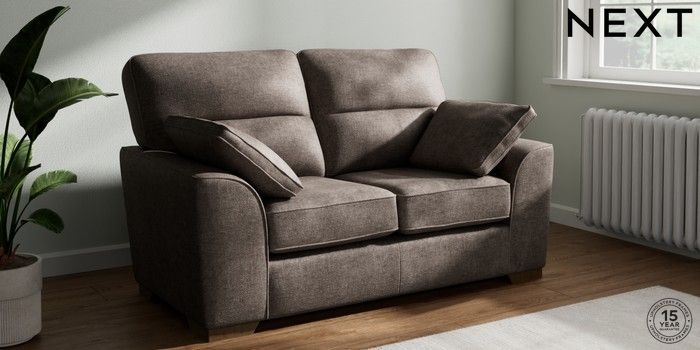 7.2.10 Buy Stamford Highback 2 Seater Small Sofa Plush Chenille Mink Brown Large Square Angle - Mid from the Next UK online shop Click here to use our accessible website