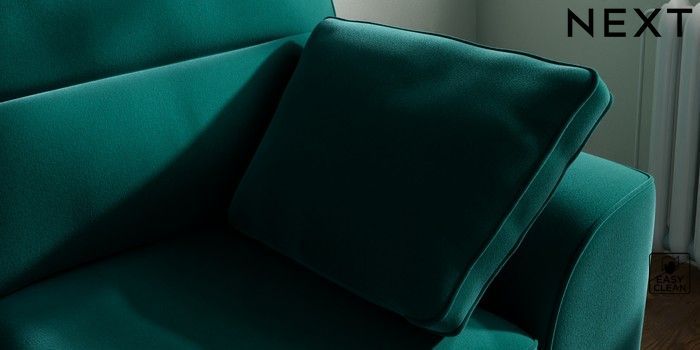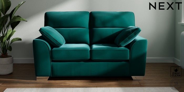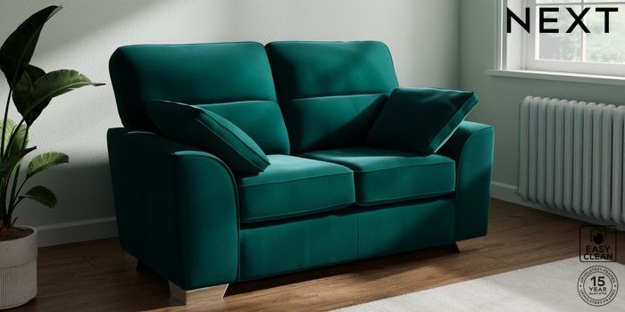 7.3.1 Buy Stamford Highback 2 Seater Small Sofa Plush Velvet Easy Clean Juniper Green Large Square Angle - Chrome Metal from the Next UK online shop Click here to use our accessible website