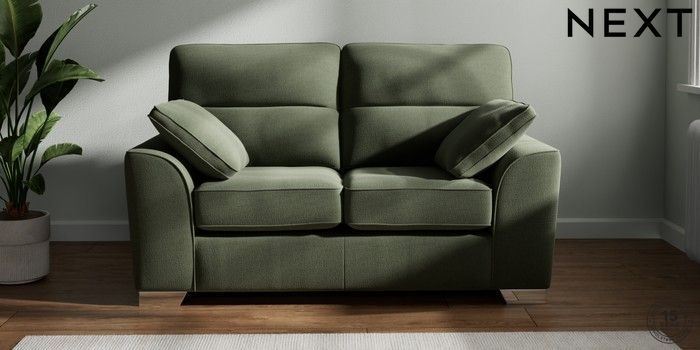 7.3.1 Buy Stamford Highback 2 Seater Small Sofa Relaxed Linen Look Dark Green Large Square Angle - Chrome Metal from the Next UK online shop Click here to use our accessible website