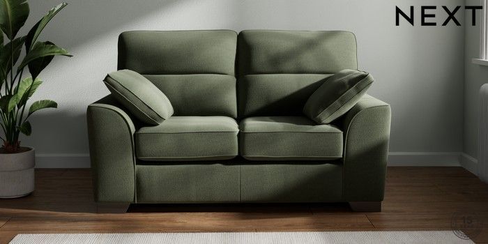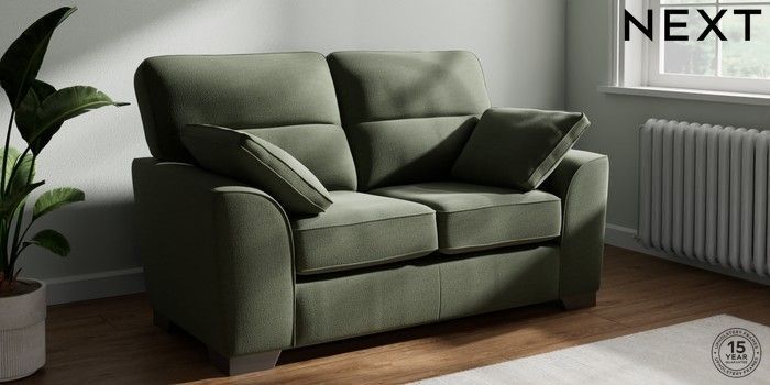 7.3.1 Buy Stamford Highback 2 Seater Small Sofa Relaxed Linen Look Dark Green Large Square Angle - Gunmetal from the Next UK online shop Click here to use our accessible website