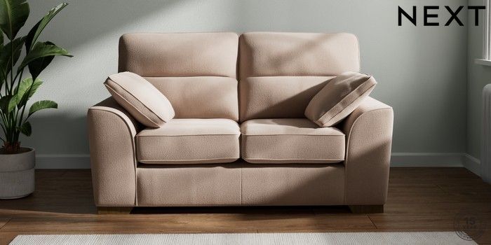 7.2.10 Buy Stamford Highback 2 Seater Small Sofa Relaxed Linen Look Mid Natural Large Square Angle - Mid from the Next UK online shop Click here to use our accessible website