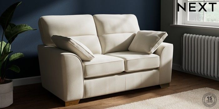 7.2.10 Buy Stamford Highback 2 Seater Small Sofa Relaxed Linen Look Oyster Large Square Angle - Brushed Brass from the Next UK online shop Click here to use our accessible website