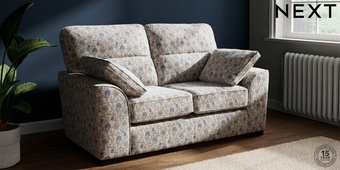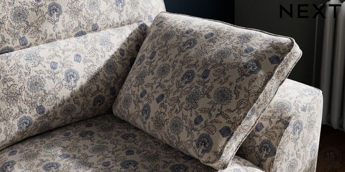 7.3.1 Buy Stamford Highback 2 Seater Small Sofa Relaxed Linen Look Print Woodblock Floral Blue Large Square Angle - Dark from the Next UK online shop Click here to use our accessible website