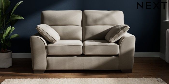 7.2.10 Buy Stamford Highback 2 Seater Small Sofa Ripple Chenille Light Natural Large Square Angle - Gunmetal from the Next UK online shop Click here to use our accessible website