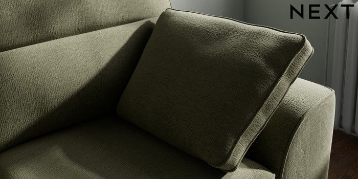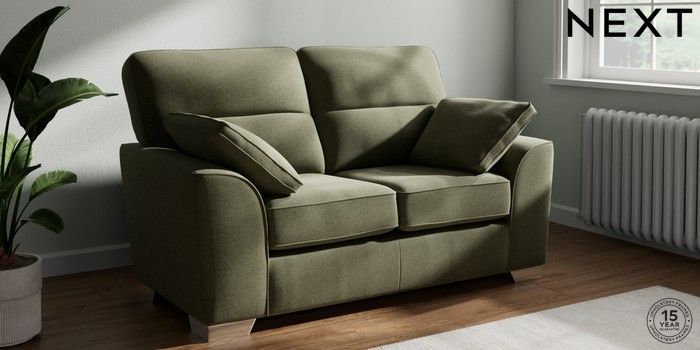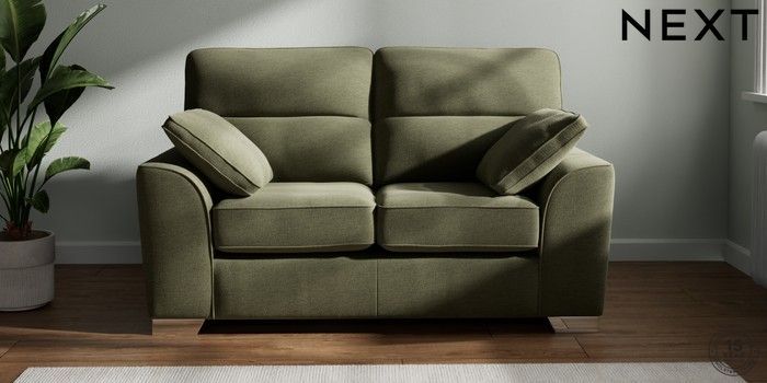 7.2.10 Buy Stamford Highback 2 Seater Small Sofa Ripple Chenille Mid Moss Green Large Square Angle - Chrome Metal from the Next UK online shop Click here to use our accessible website