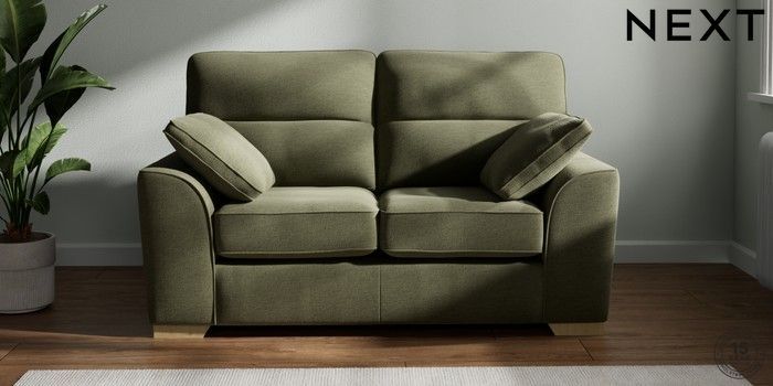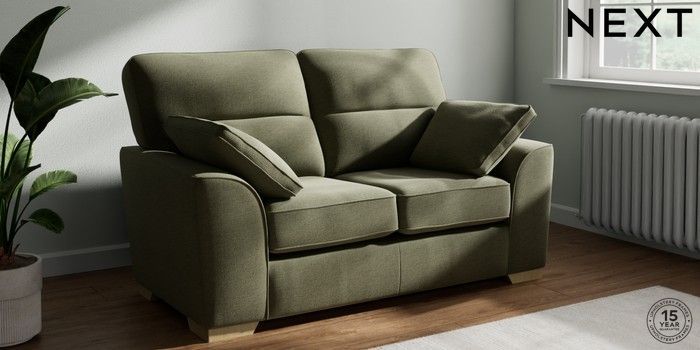 7.2.10 Buy Stamford Highback 2 Seater Small Sofa Ripple Chenille Mid Moss Green Large Square Angle - Light from the Next UK online shop Click here to use our accessible website