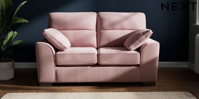 7.2.10 Buy Stamford Highback 2 Seater Small Sofa Natural Mix Light Rose Pink Large Square Angle - Gunmetal from the Next UK online shop Click here to use our accessible website
