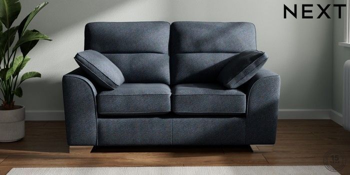 7.2.6 Buy Stamford Highback 2 Seater Small Sofa Tweedy Chenille Navy Blue Large Square Angle - Chrome Metal from the Next UK online shop Click here to use our accessible website
