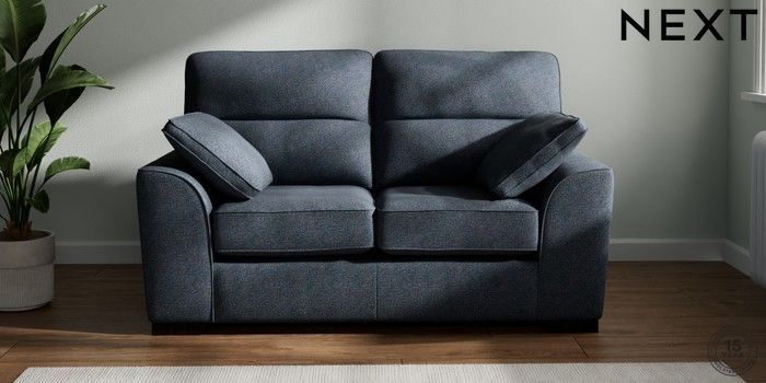 7.2.6 Buy Stamford Highback 2 Seater Small Sofa Tweedy Chenille Navy Blue Large Square Angle - Dark from the Next UK online shop Click here to use our accessible website