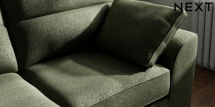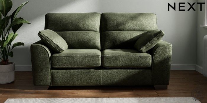 7.3.1 Buy Stamford Highback 2 Seater Sofa Boucle Chenille Dark Moss Green Large Square Angle - Gunmetal from the Next UK online shop Click here to use our accessible website