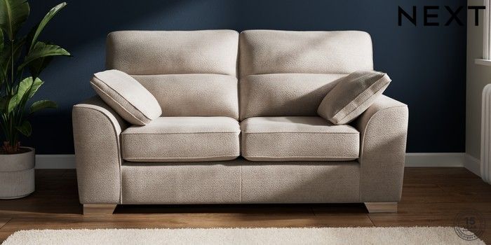 7.2.6 Buy Stamford Highback 2 Seater Sofa Boucle Chenille Light Natural Large Square Angle - Chrome Metal from the Next UK online shop Click here to use our accessible website