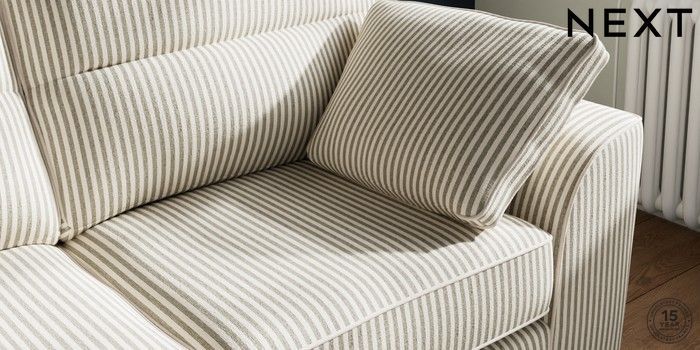 7.3.1 Buy Stamford Highback 2 Seater Sofa Chenille Stripe Moss Green Large Square Angle - Light from the Next UK online shop Click here to use our accessible website