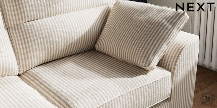 7.3.1 Buy Stamford Highback 2 Seater Sofa Chenille Stripe Natural Large Square Angle - Light from the Next UK online shop Click here to use our accessible website