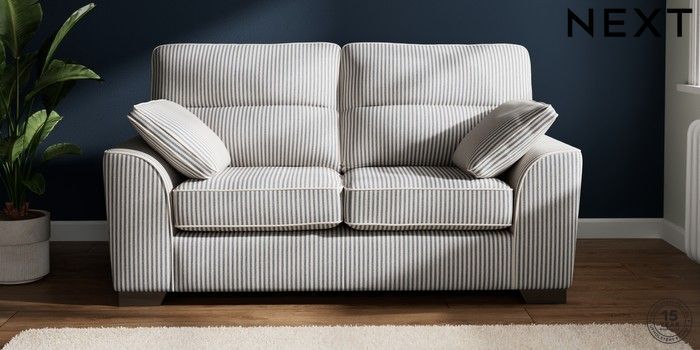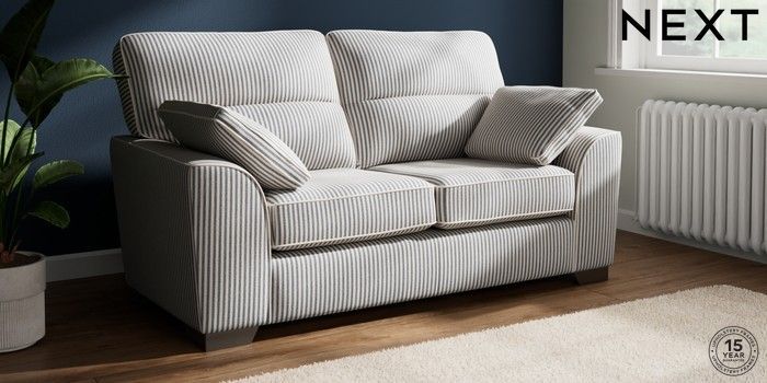 7.3.1 Buy Stamford Highback 2 Seater Sofa Chenille Stripe Slate Blue Large Square Angle - Gunmetal from the Next UK online shop Click here to use our accessible website