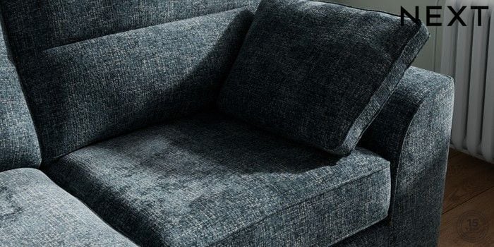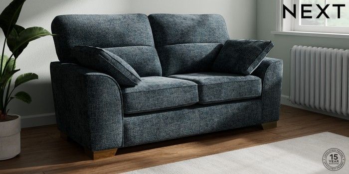 7.2.10 Buy Stamford Highback 2 Seater Sofa Chunky Chenille Dark Navy Blue Large Square Angle - Brushed Brass from the Next UK online shop Click here to use our accessible website