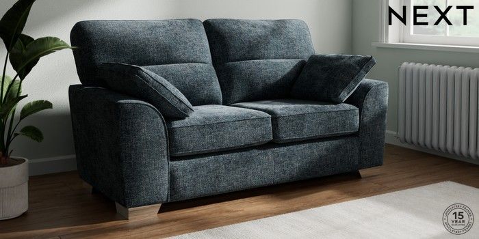 7.2.10 Buy Stamford Highback 2 Seater Sofa Chunky Chenille Dark Navy Blue Large Square Angle - Chrome Metal from the Next UK online shop Click here to use our accessible website