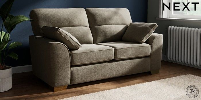 7.2.10 Buy Stamford Highback 2 Seater Sofa Chunky Marl Light Olive Green Large Square Angle - Brushed Brass from the Next UK online shop Click here to use our accessible website