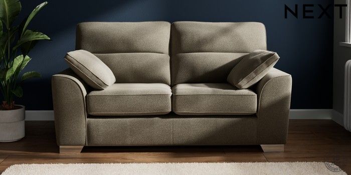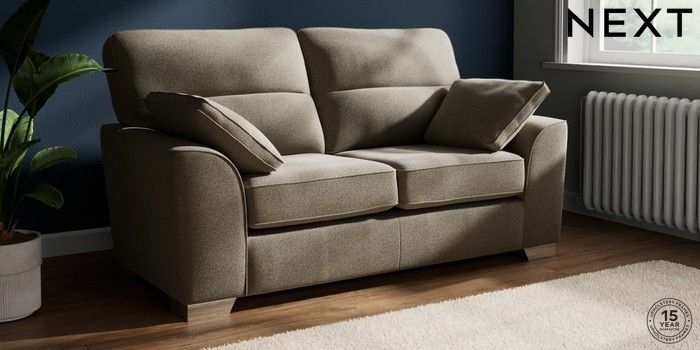 7.2.10 Buy Stamford Highback 2 Seater Sofa Chunky Marl Light Olive Green Large Square Angle - Chrome Metal from the Next UK online shop Click here to use our accessible website