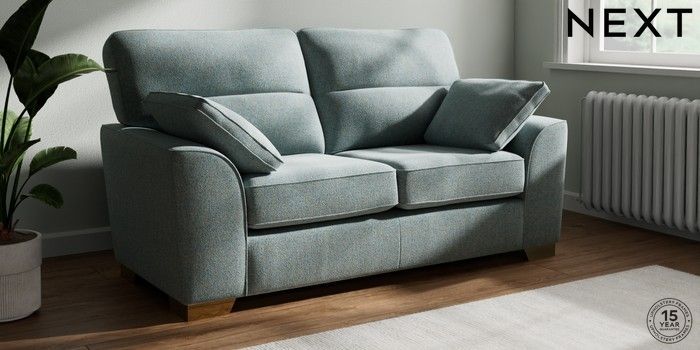 7.2.10 Buy Stamford Highback 2 Seater Sofa Chunky Marl Mid Blue Large Square Angle - Brushed Brass from the Next UK online shop Click here to use our accessible website
