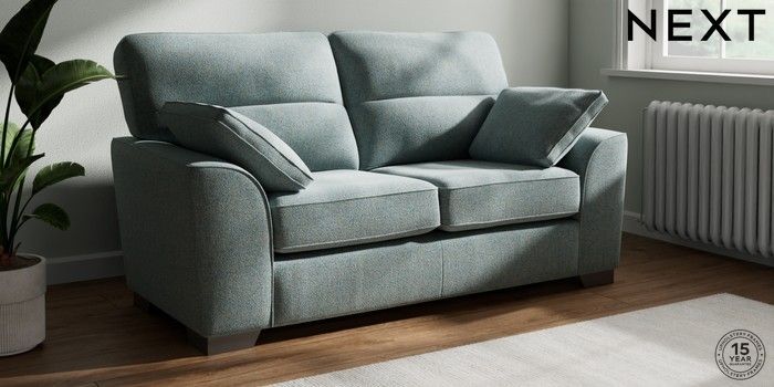 7.2.10 Buy Stamford Highback 2 Seater Sofa Chunky Marl Mid Blue Large Square Angle - Gunmetal from the Next UK online shop Click here to use our accessible website