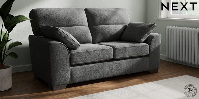 7.2.10 Buy Stamford Highback 2 Seater Sofa Chunky Texture Dark Grey Large Square Angle - Gunmetal from the Next UK online shop Click here to use our accessible website