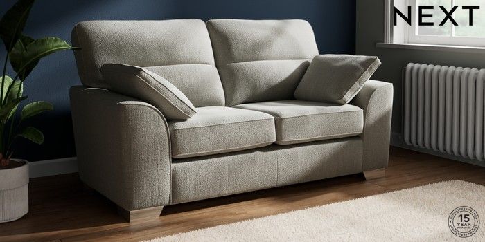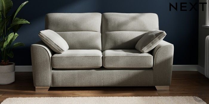7.2.10 Buy Stamford Highback 2 Seater Sofa Chunky Texture Dove Large Square Angle - Chrome Metal from the Next UK online shop Click here to use our accessible website