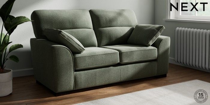 7.2.10 Buy Stamford Highback 2 Seater Sofa Chunky Texture Mid Forest Green Large Square Angle - Dark from the Next UK online shop Click here to use our accessible website