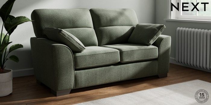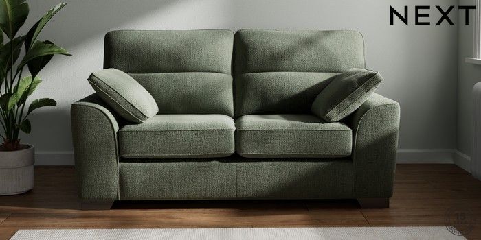 7.2.10 Buy Stamford Highback 2 Seater Sofa Chunky Texture Mid Forest Green Large Square Angle - Gunmetal from the Next UK online shop Click here to use our accessible website