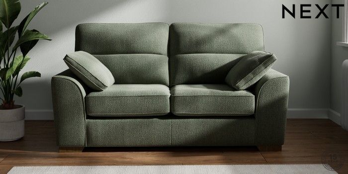 7.2.10 Buy Stamford Highback 2 Seater Sofa Chunky Texture Mid Forest Green Large Square Angle - Mid from the Next UK online shop Click here to use our accessible website