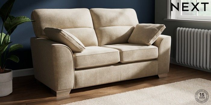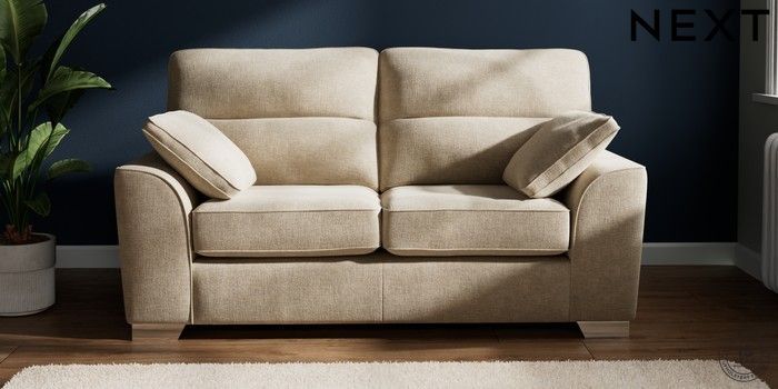 7.2.10 Buy Stamford Highback 2 Seater Sofa Chunky Weave Cream Large Square Angle - Chrome Metal from the Next UK online shop Click here to use our accessible website