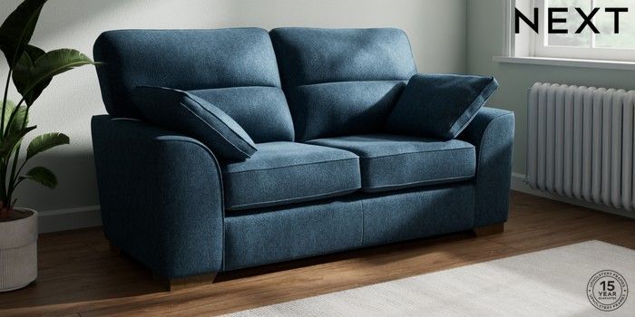 7.2.10 Buy Stamford Highback 2 Seater Sofa Cotswold Chenille Dark Blue Large Square Angle - Mid from the Next UK online shop Click here to use our accessible website