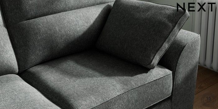 7.2.6 Buy Stamford Highback 2 Seater Sofa Cotswold Chenille Dark Grey Large Square Angle - Brushed Brass from the Next UK online shop Click here to use our accessible website