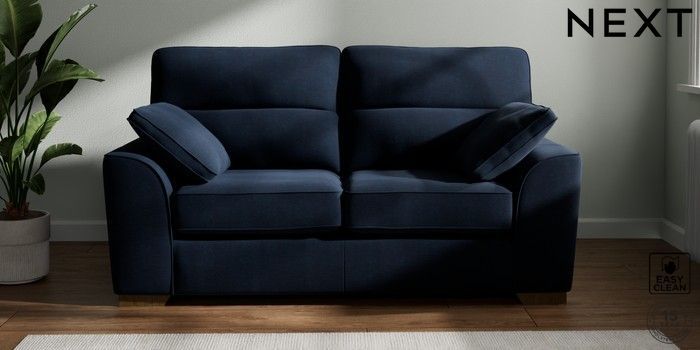 7.2.6 Buy Stamford Highback 2 Seater Sofa Fine Chenille Easy Clean Dark Navy Blue Large Square Angle - Mid from the Next UK online shop Click here to use our accessible website