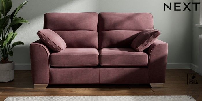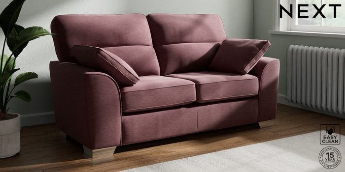 7.3.1 Buy Stamford Highback 2 Seater Sofa Fine Chenille Easy Clean Mid Mulberry Purple Large Square Angle - Chrome Metal from the Next UK online shop Click here to use our accessible website