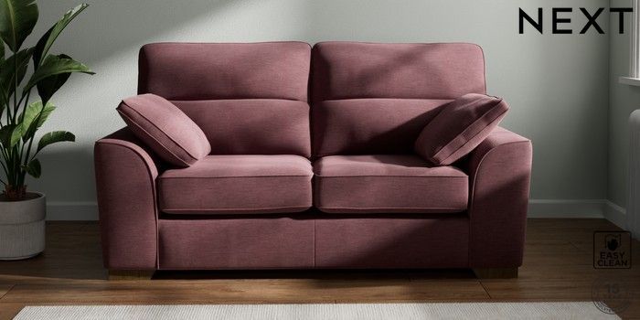 7.2.6 Buy Stamford Highback 2 Seater Sofa Fine Chenille Easy Clean Mid Mulberry Purple Large Square Angle - Mid from the Next UK online shop Click here to use our accessible website
