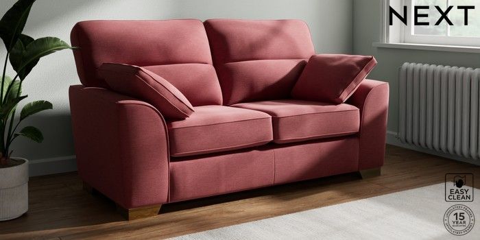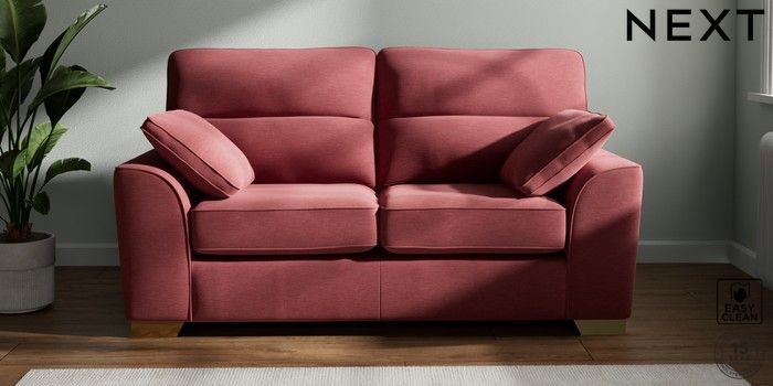 7.2.10 Buy Stamford Highback 2 Seater Sofa Fine Chenille Easy Clean Mid Pink Large Square Angle - Brushed Brass from the Next UK online shop Click here to use our accessible website