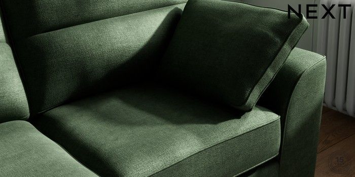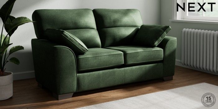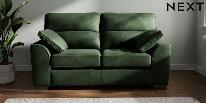 7.2.10 Buy Stamford Highback 2 Seater Sofa Luxe Chenille Dark Green Large Square Angle - Gunmetal from the Next UK online shop Click here to use our accessible website