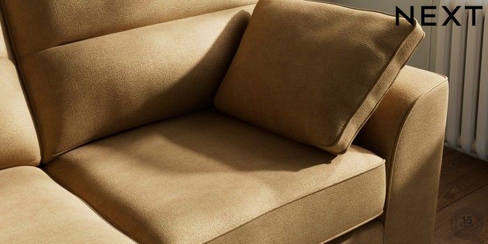 7.2.6 Buy Stamford Highback 2 Seater Sofa Luxe Chenille Honey Yellow Large Square Angle - Brushed Brass from the Next UK online shop Click here to use our accessible website