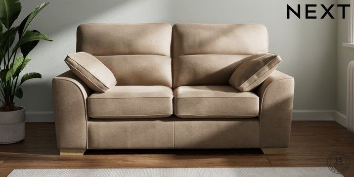 6.12.13 Buy Stamford Highback 2 Seater Sofa Luxe Chenille Mid Camel Beige Large Square Angle - Light from the Next UK online shop Click here to use our accessible website